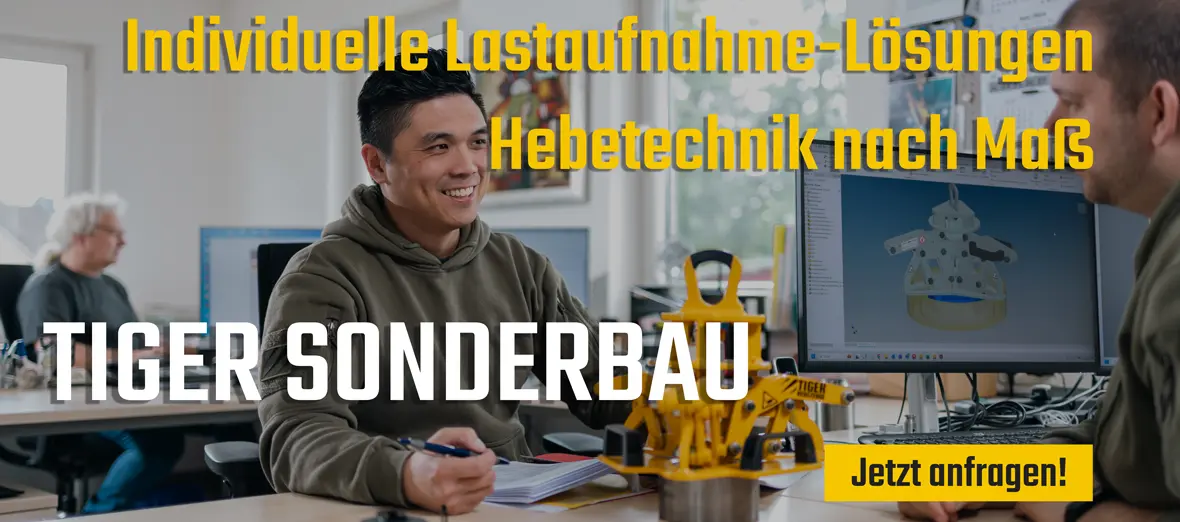 Willkommen bei TigerHebezeuge®, Ihrem spezialisierten Hebetechnik-Online-Shop! Seit Jahrzehnten vertrauen gewerbliche Kunden in Deutschland und Europa auf unsere hochwertigen Produkte und maßgeschneiderten Lösungen. Wir sind stolz darauf, Ihnen ein umfassendes Sortiment an Hebezeugen, Lastaufnahmemitteln und Zubehör anzubieten, das höchste Sicherheits- und Qualitätsstandards erfüllt.