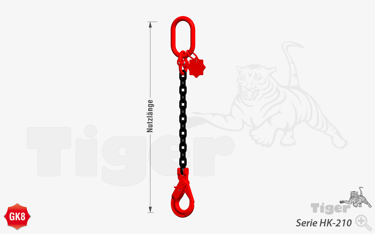 1-Strang-Kettengehänge HK-210 mit Selflocking-Gabellasthaken in GK8