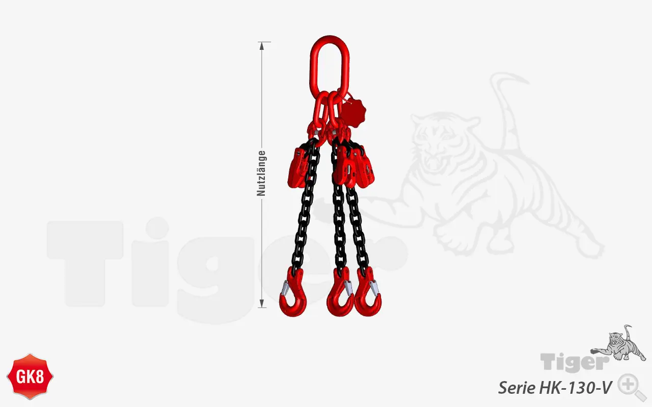 3-Strang-Kettengehänge HK-130-V mit Kettenverkürzer und Gabellasthaken in GK8
