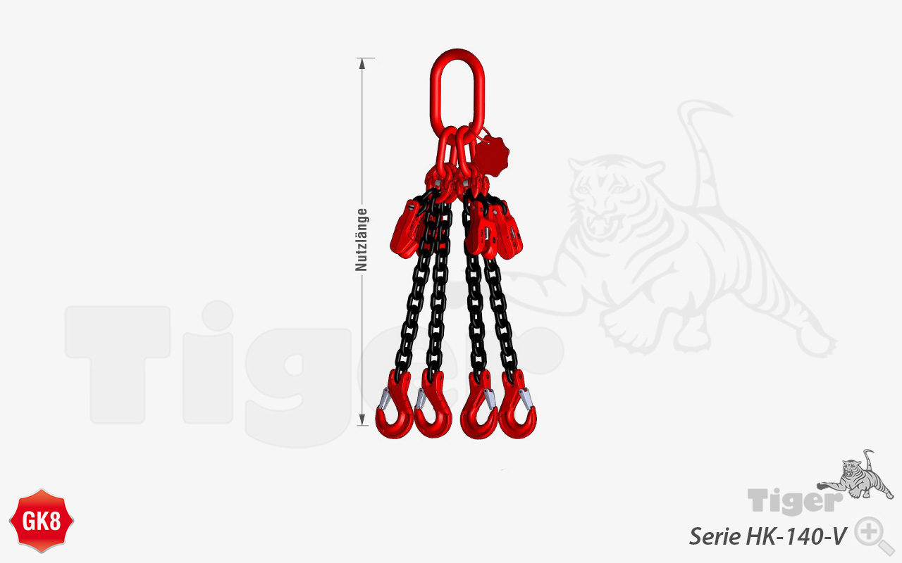 4-Strang-Kettengehänge HK-140-V mit Kettenverkürzer und Gabellasthaken in GK8