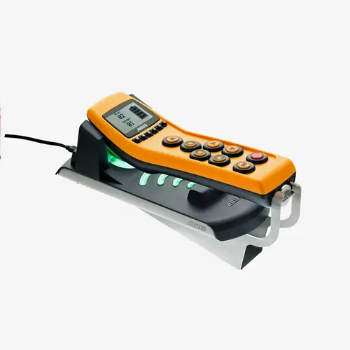 Flursteuerung über ergonomisch gestalteten Hängetaster ABUCommander mit 2-stufigen Druckschaltern und großflächiger „Not-Halt“-Schlagtaste. Der Anschluss der Steuerleitung erfolgt über Schnellsteckverbindung mit Drehverschraubung (Bajonett-Schnellsteckverbindung).