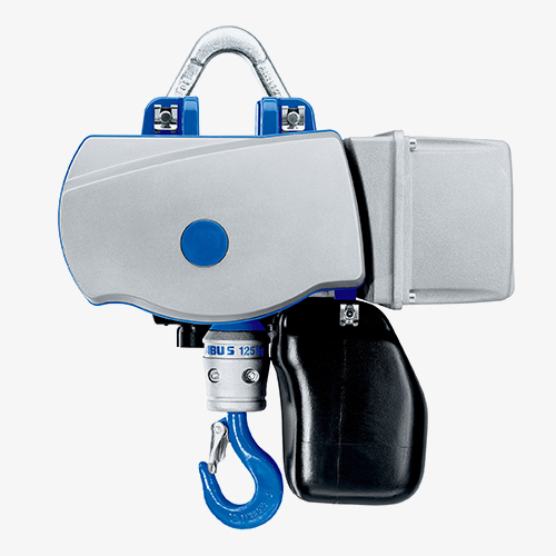 Abus Elektrokettenzug GM6 mit Aufhängebügel und Abus Handfahrwerk für 400 V Starker Elektrokettenzug mit Rollfahrwerk und zwei Hub-Geschwindigkeiten