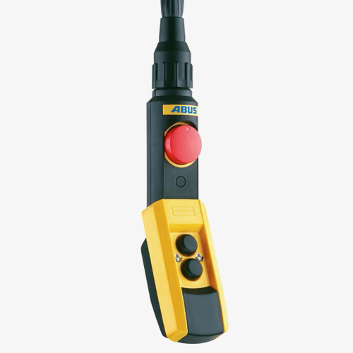Flursteuerung über ergonomisch gestalteten Hängetaster ABUCommander mit 2-stufigen Druckschaltern und großflächiger „Not-Halt“-Schlagtaste. Der Anschluss der Steuerleitung erfolgt über Schnellsteckverbindung mit Drehverschraubung (Bajonett-Schnellsteckverbindung).