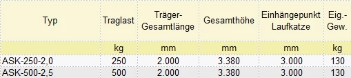 ASK-250-2,0 | Kran aus Aluminium | 250 [kg] | 4.000,00 € | Übernehmen |