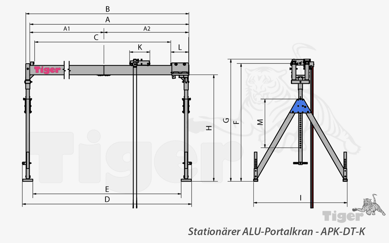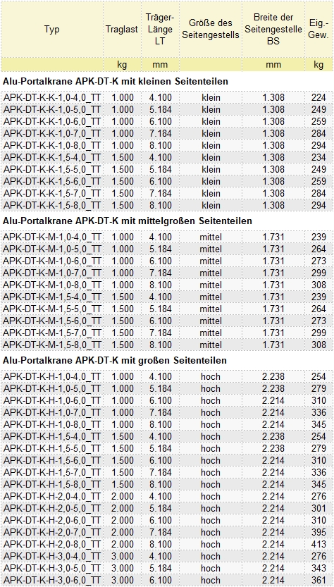 - Alu-Portalkran APK-DT-K mit Horizontalversteller und klappbaren Seitenteilen