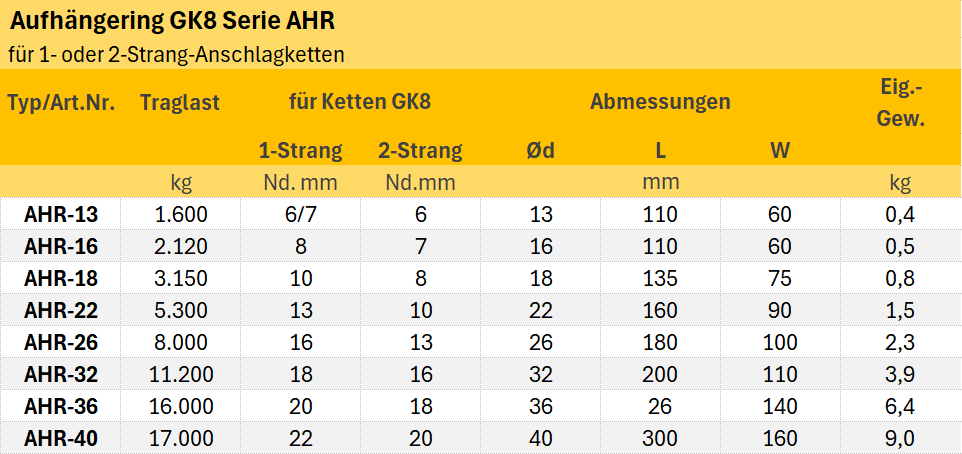 Aufhängering in GK8 für 1-Strang und 2-Strang-Anschlagketten