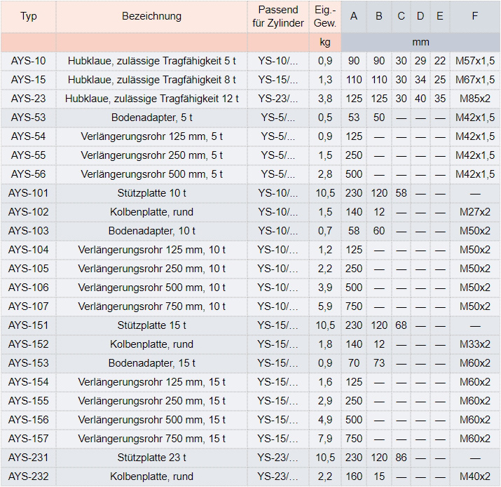 AYS-155 | Verlängerungsrohr 250 mm, 15 t | YS-15/.. | 94,00 € | Übernehmen |