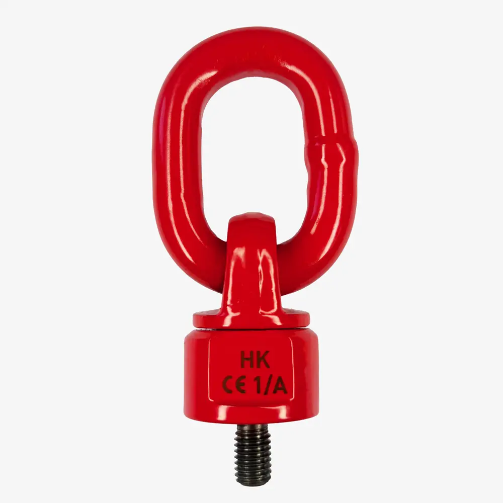 Im Unterschied zu starren Anschlagpunkten ermöglicht die drehbare Ausführung eine praxisgerechte Ausrichtung während des Hebevorgangs. Der Lastbügel ist beweglich ausgeführt und unterstützt eine funktionale Lastaufnahme bei unterschiedlichen Anschlagwinkeln.