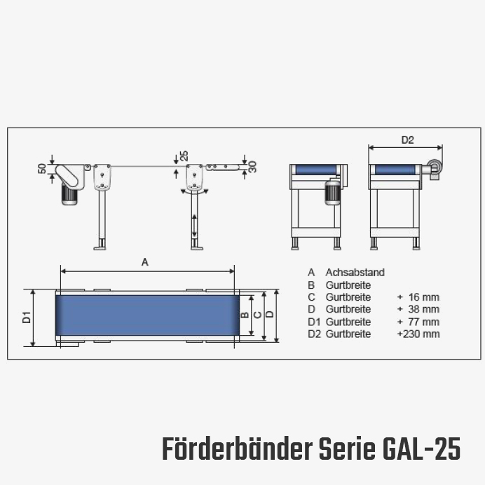 Das Förderband GAL-25 ist der Klassiker aus dem GEPPERT-Standardprogramm und auf Wunsch innerhalb von 24 Stunden lieferbar.
