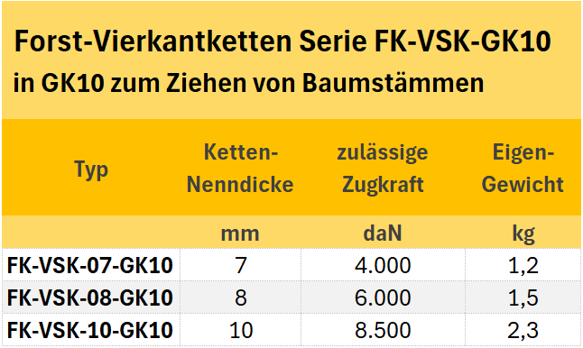 - Forst-Vierkantstahlkette Serie FK-VSK-GK10