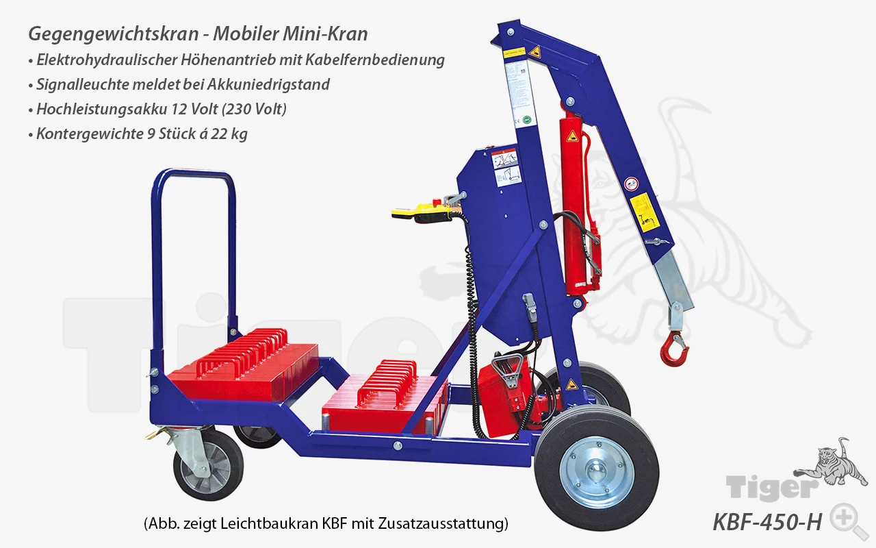 Leichtbau-Gegengewichtskran KBF-450-H mit optionaler Zusatzaustattung