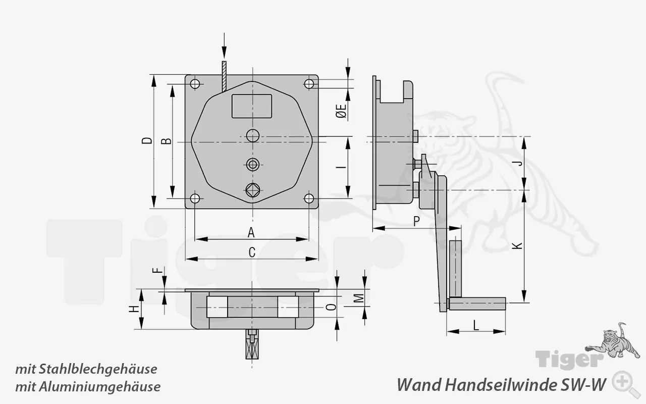 Die Wandseilwinden der Serie SW-W sind zur ortsfesten Montage in Gebäuden vorgesehen. Mit ihr können Drahtseil-Ø von 3 bis 7 mm sicher aufgewickelt werden.
