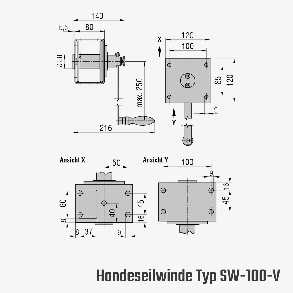 - Handseilwinde SW zur Konsolenbefestigung, mit Handkurbel