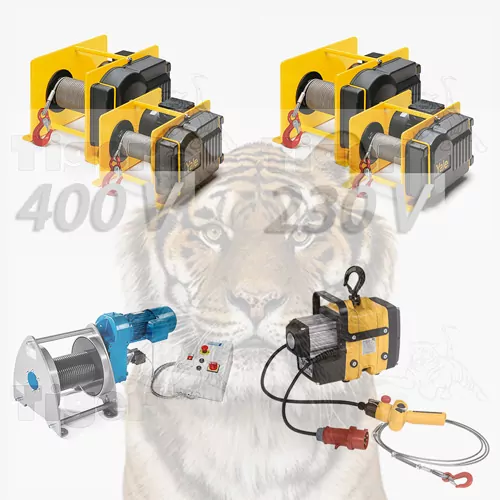 Wir bieten 230 Volt Ausführungen von 100 – 2000 kg WLL. Ist die Last schwerer, führt kein Weg an den 400 Volt Ausführungen vorbei.