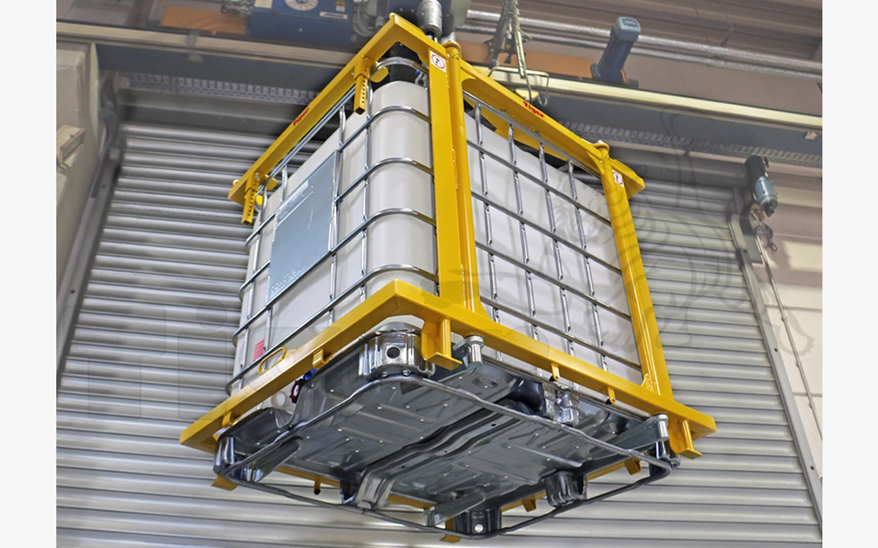 IBC-Transportgestell mit Taktautomatik - IBC-Container per Kran heben