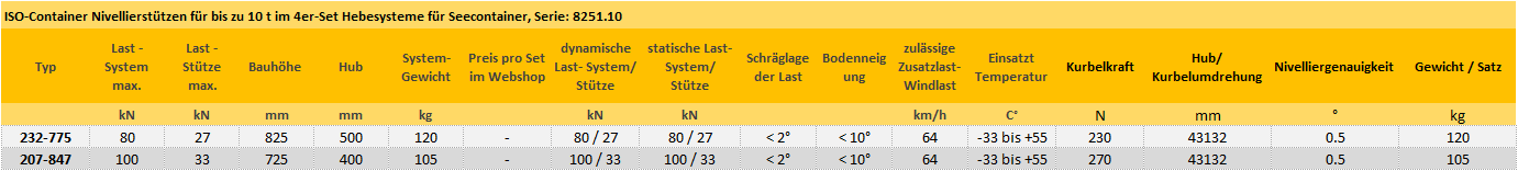 4er Set Container-Nivellierstützen 8251.10 - Container-Last-Systeme bis 100 kN