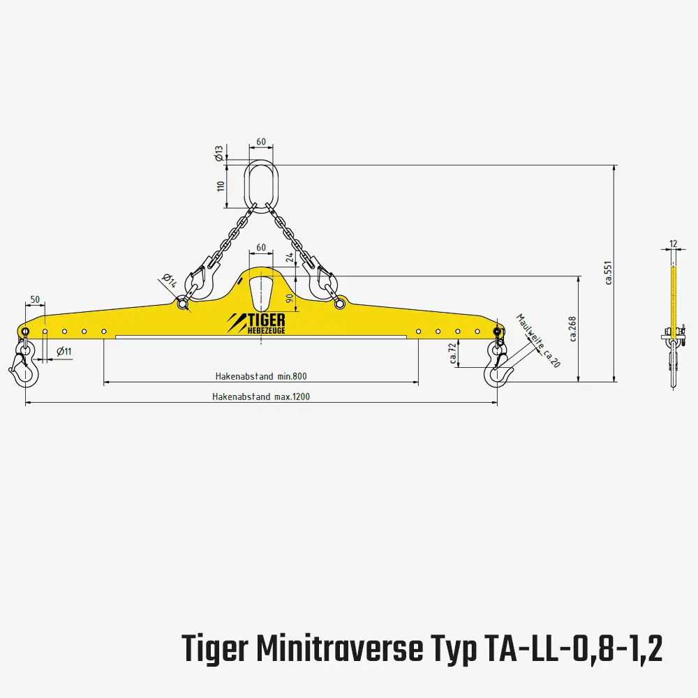 - Tiger Mini-Balkentraverse TA-LL inkl. Krankette, Schäkel und Lasthaken