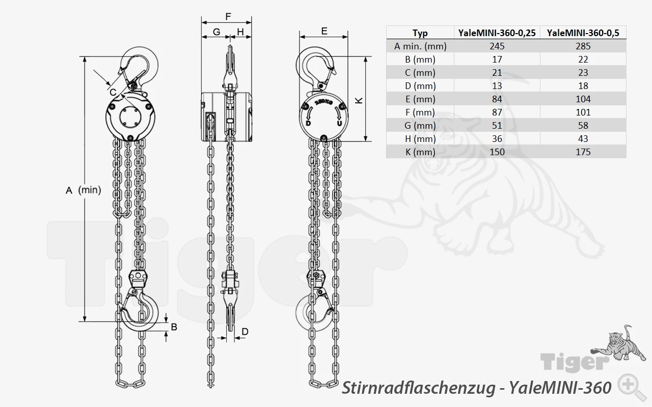 Yale Mini-Stirnradflaschenzug YaleMINI-360 mit 360° Kettenführung