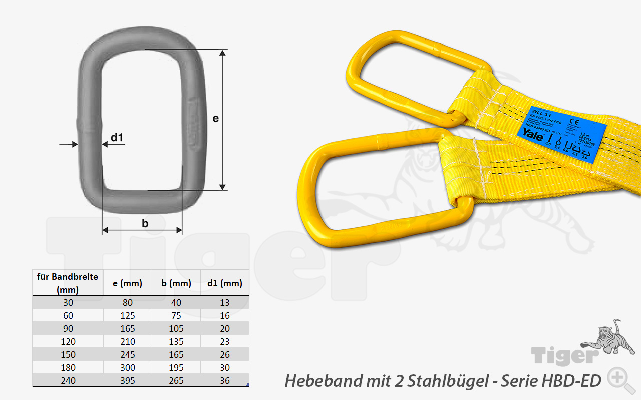 Yaletex® Hebeband HBD-ED aus Polyester (PES), 2-lagig genäht nach EN 1492-1 mit 2 Stahlbügeln und mit Traglastetikett