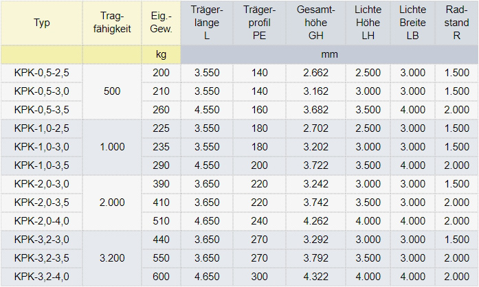 | KPK-2,0-4,0 | 4.000 [mm] | 2.000 [kg] | 4.650 [mm] | 4.600,00 € | Übernehmen |