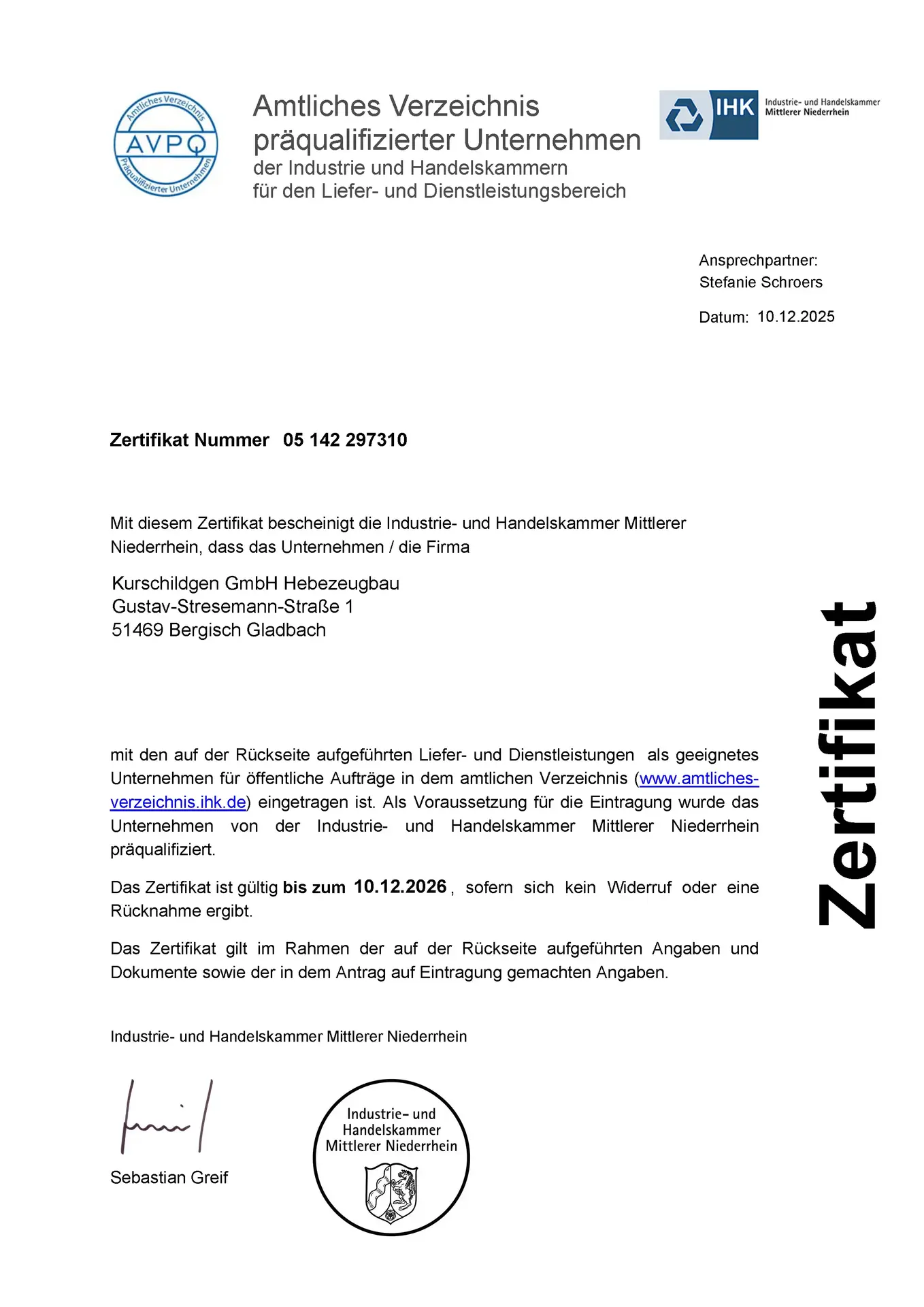 Unsere Firma verfügt akuell über nachfolgende Zertifikate