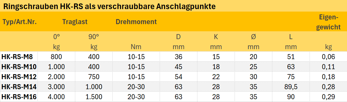Ringschrauben HK-RS - GK8 - für professionelle Hebe- und Anschlaganwendungen