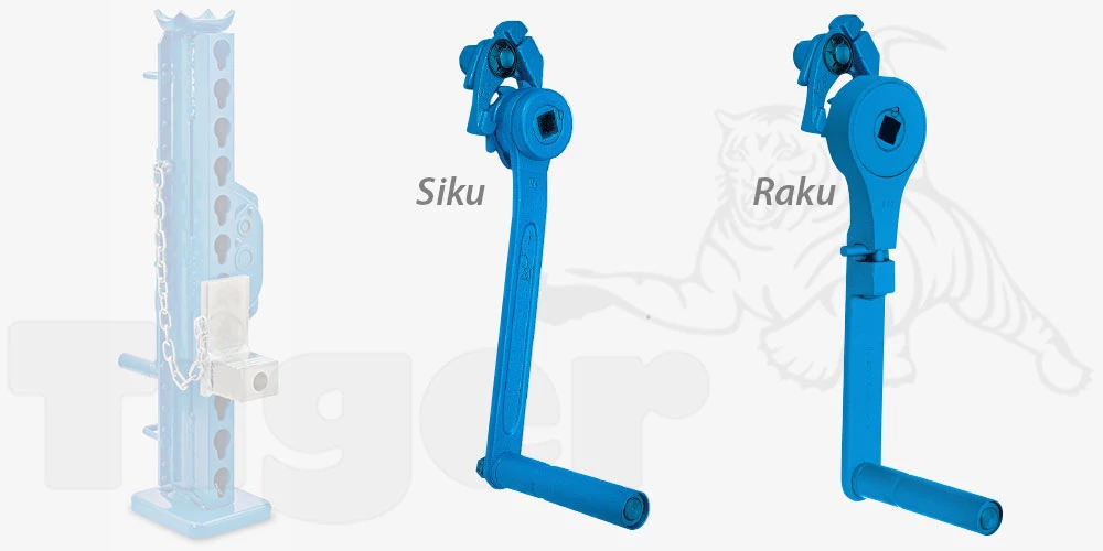 Die Raku funktioniert wie ein Handhebel bei einem Handhebelzug. Durch das Umlegen des Umschalthebels auf Heben oder Senken kann diese Kurbel wie eine Ratsche eingesetzt werden. Dieses ist gerade von Vorteil bei beengten Arbeitsverhältnissen. Des Weiteren kann diese Art der Kurbel auch um 360° betätigt werden, da hier das gleiche Bremssystem wie bei der Siku verwendet wird.