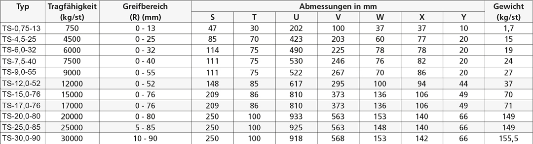 | TS-9,0-55 | 0-55 [mm] | 9.000 [kg] | 739,00 € | Übernehmen |