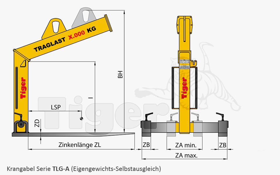 Tiger Krangabel TLG-A mit Eigengewicht-Selbstausgleich und stufenlos verstellbaren Zinken
