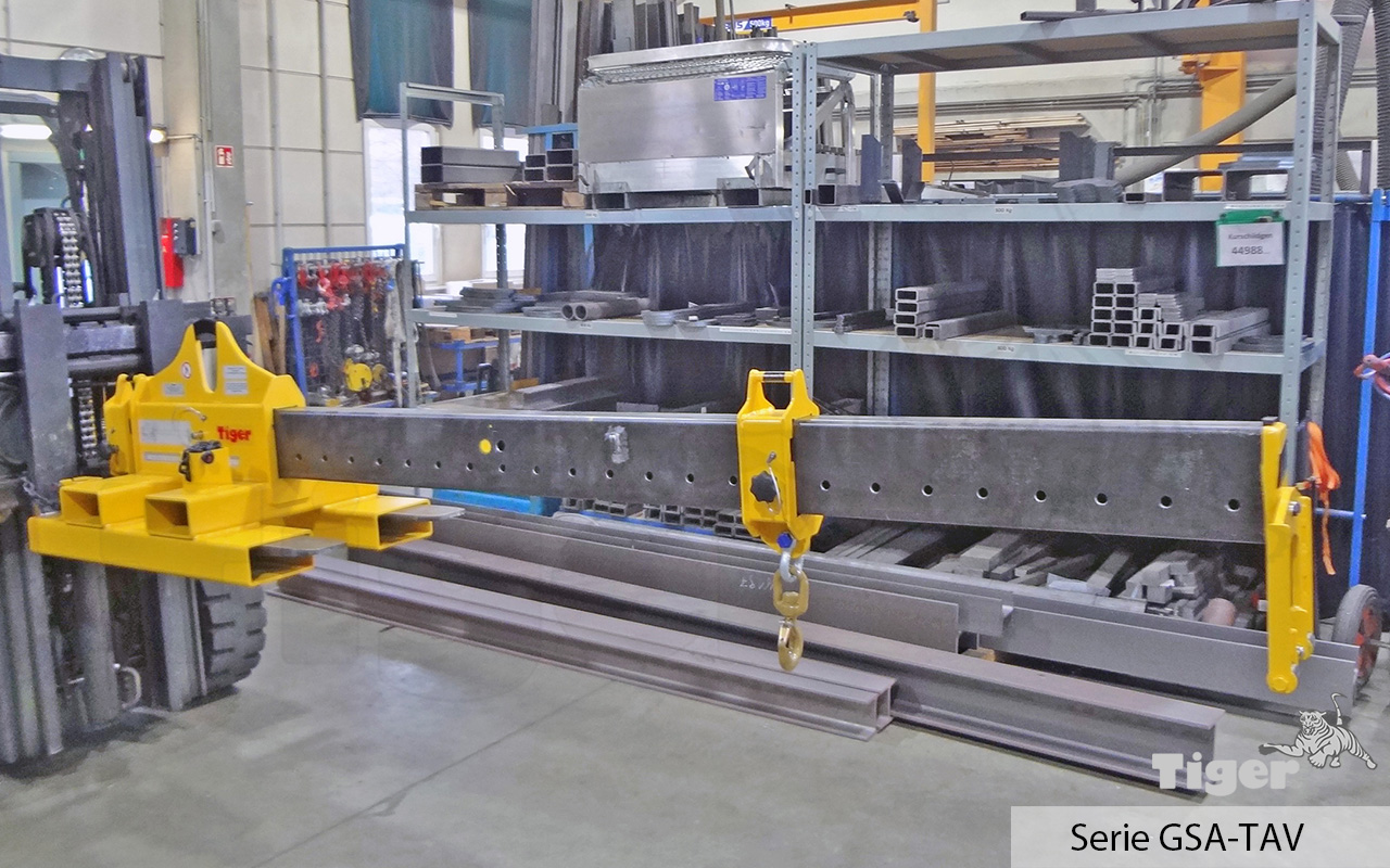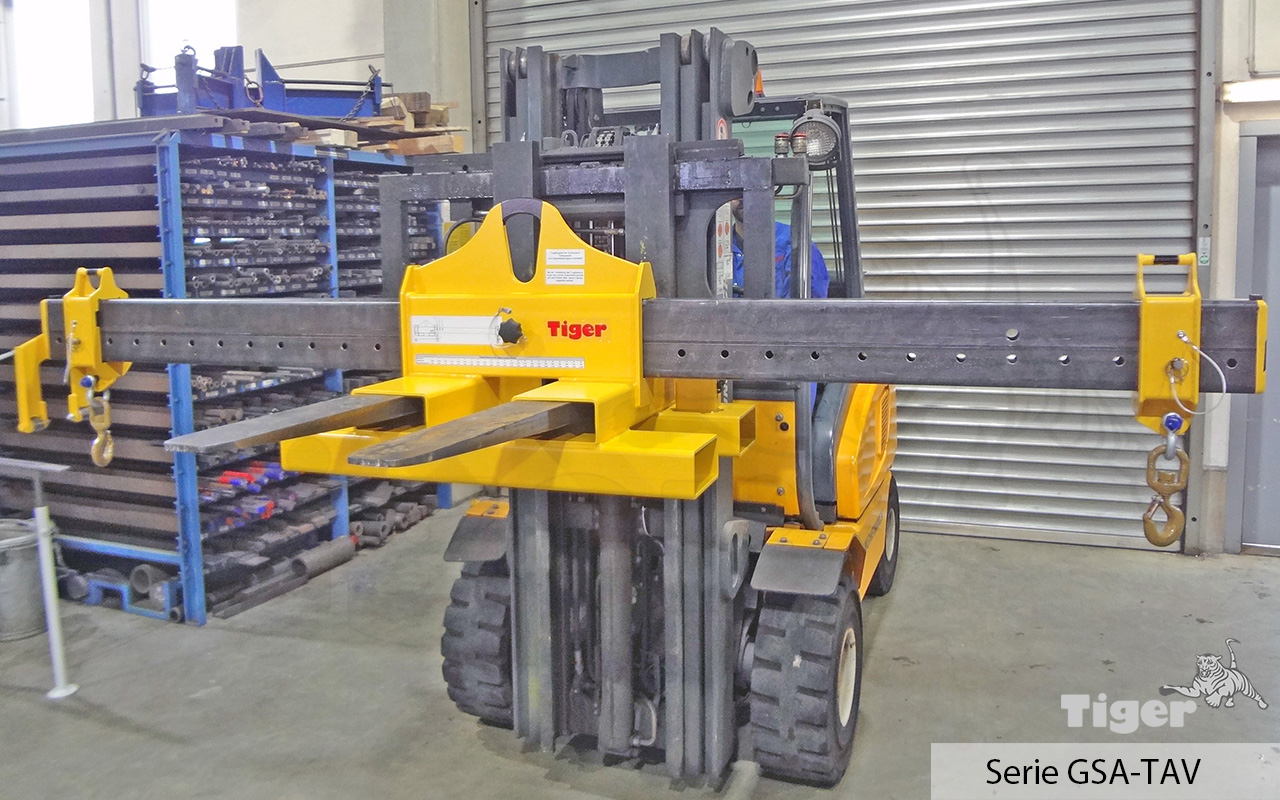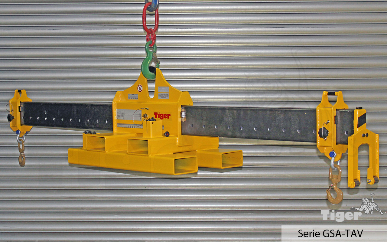 Tiger Kombi-Lastaufnahmemittel GSA-TAV - Verstellbare Hakentraverse und Stapler-Lastarm für den Einsatz am Kran und am Stapler