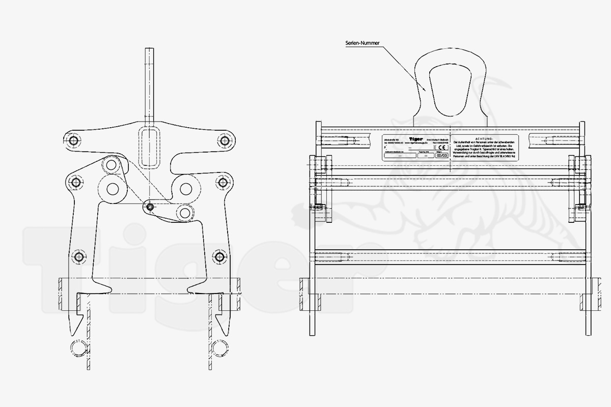Unsere Lastaufnahmemittel verfügen über ein Typenschild mit Hersteller, Tragfähigkeit, Eigengewicht und Typen-Nr. sowie auch einen QR-Code mit Zugriff auf die EG-Konformitätserklärung.