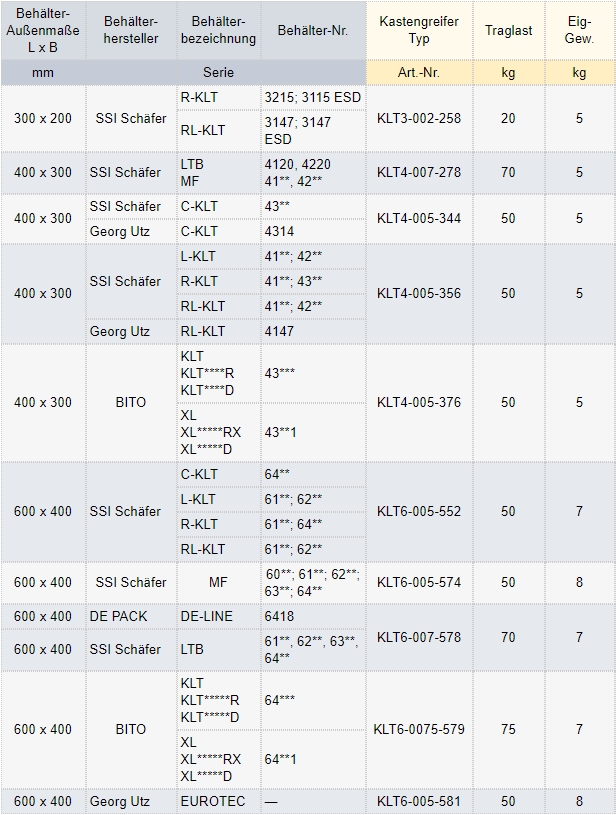 KLT6-005-552-Schaefer-L-KLT-61** | L-KLT-61** | Schäfer | 1.056,00 € | Übernehmen |