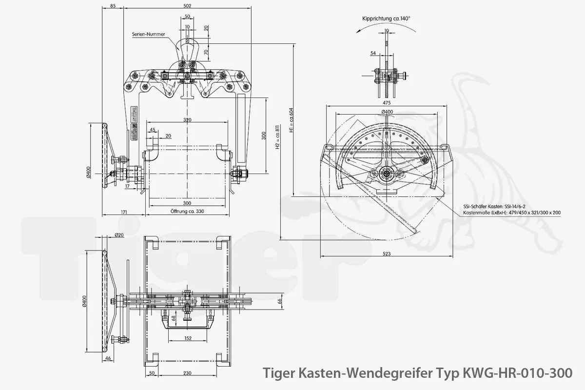 Wir passen unsere Tiger Kastengreifer für Lagerkästen und Waschkörbe der Serie KWG-HR auch gerne an Ihre konkrete Hebesituation an.
