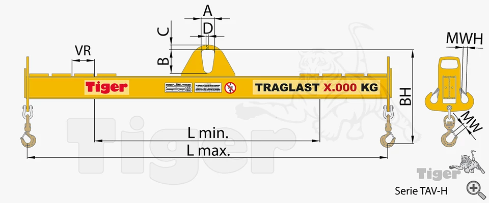 Tiger Balkentraversen TAV-H - Krantraversen mit zwei verstellbaren Wirbellasthaken und 2 Paar Seitenhaken