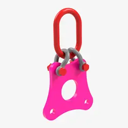 Bei dem Element Kranöse und Kettengehänge handelt es sich um ein 2-Strang Kettengehänge in GK10 sowie einen Aufhängering in GK8. Die Kranöse wird hierbei mittig und das 2-Strang-Kettengehänge beidseitig am Hauptbalken verschraubt.