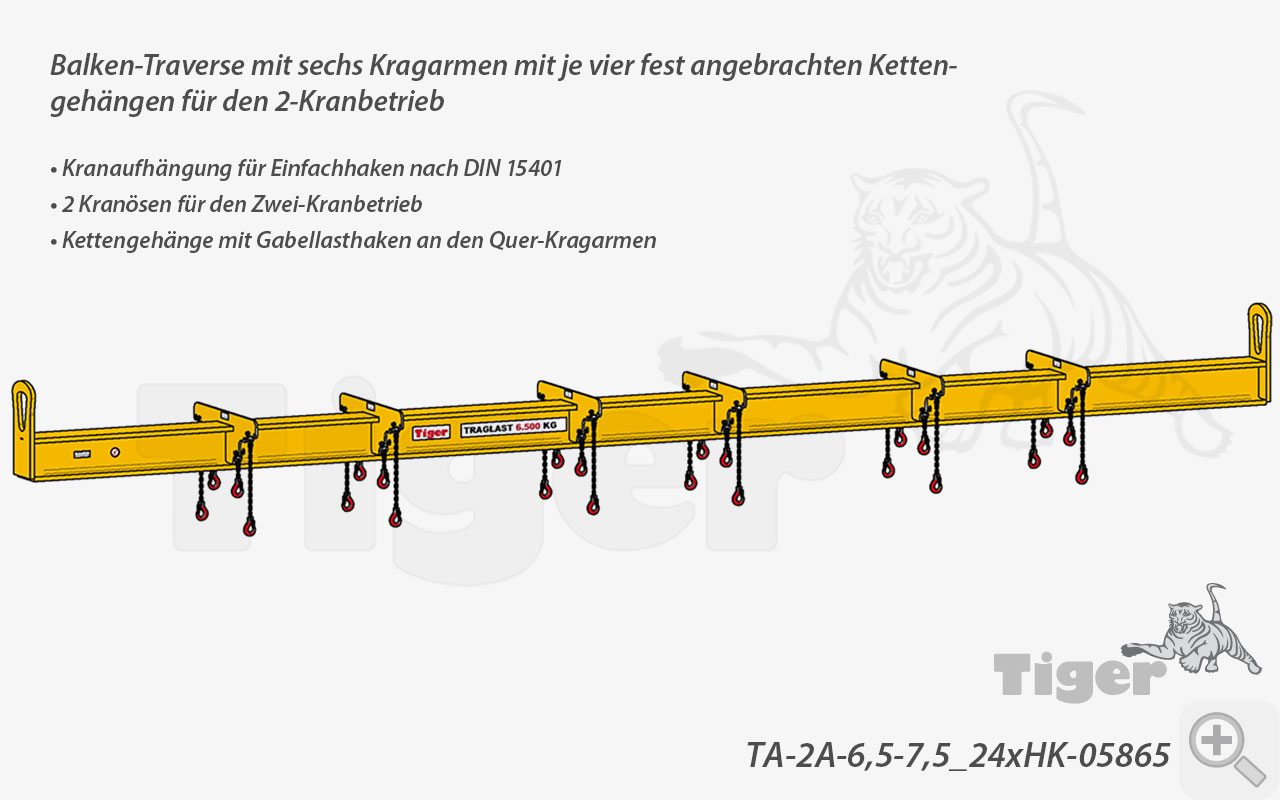 Tiger Sonder-2-Kran-Traversen mit Kragarmen mit 12 Hakenketten und 24 Lasthaken