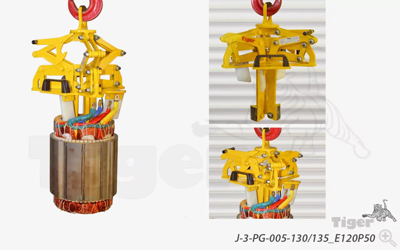 Tiger Sonder-Innengreifer mit 3 langen Pallen mit Schonbelag zum Heben von Stator-Paketen