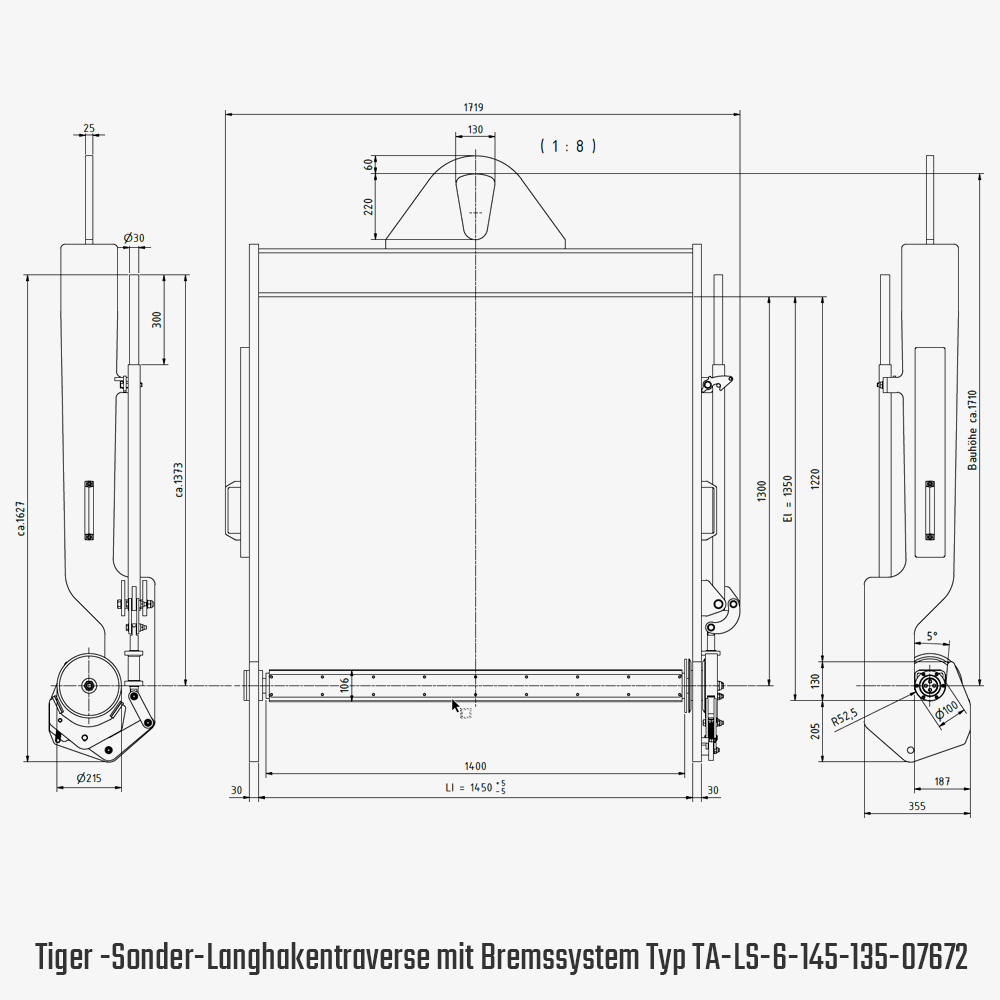 - Tiger Sonder-Lamellenhakentraverse mit Bremssystem für den Einsatz im Kran