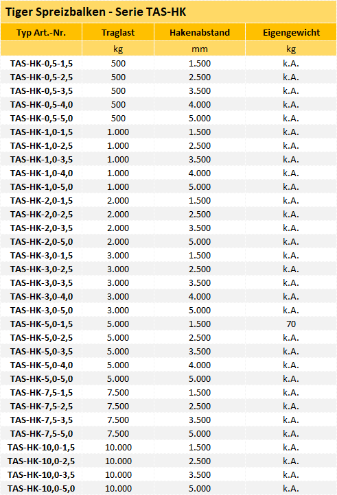 TAS-HK-1,0-3,5 | 3.500 [mm] | 1.000 [kg] | 925,00 € | Übernehmen |
