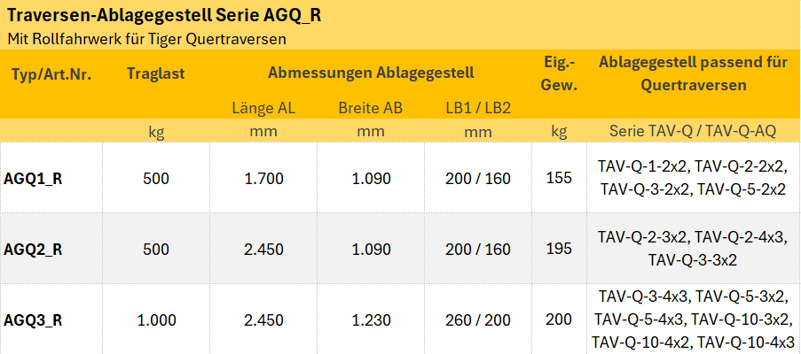 - Tiger Ablagegestelle für Tiger Quertraverse Serie AGQ_R