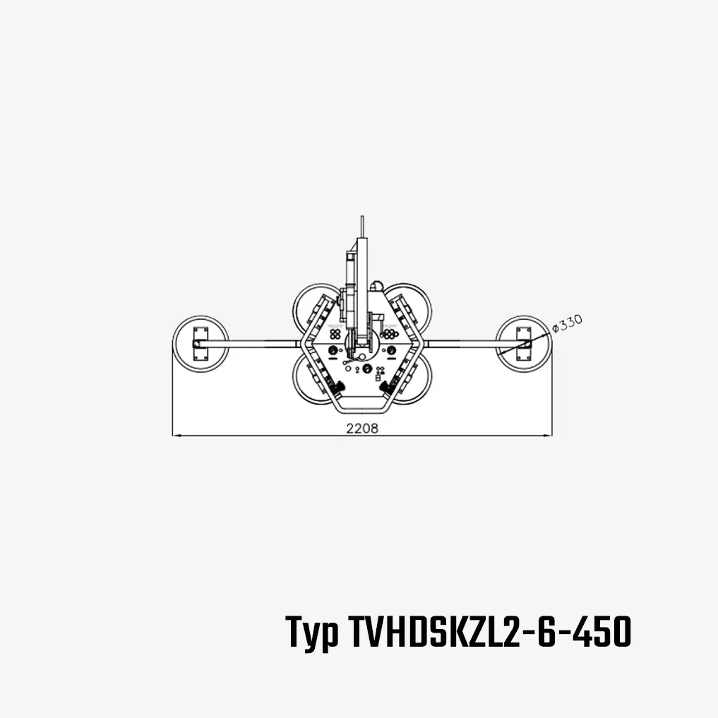 - Tragfähigkeit: 300 kg (4 Saugteller) / 450 kg (6 Saugteller) / 600 kg (8 Saugteller)