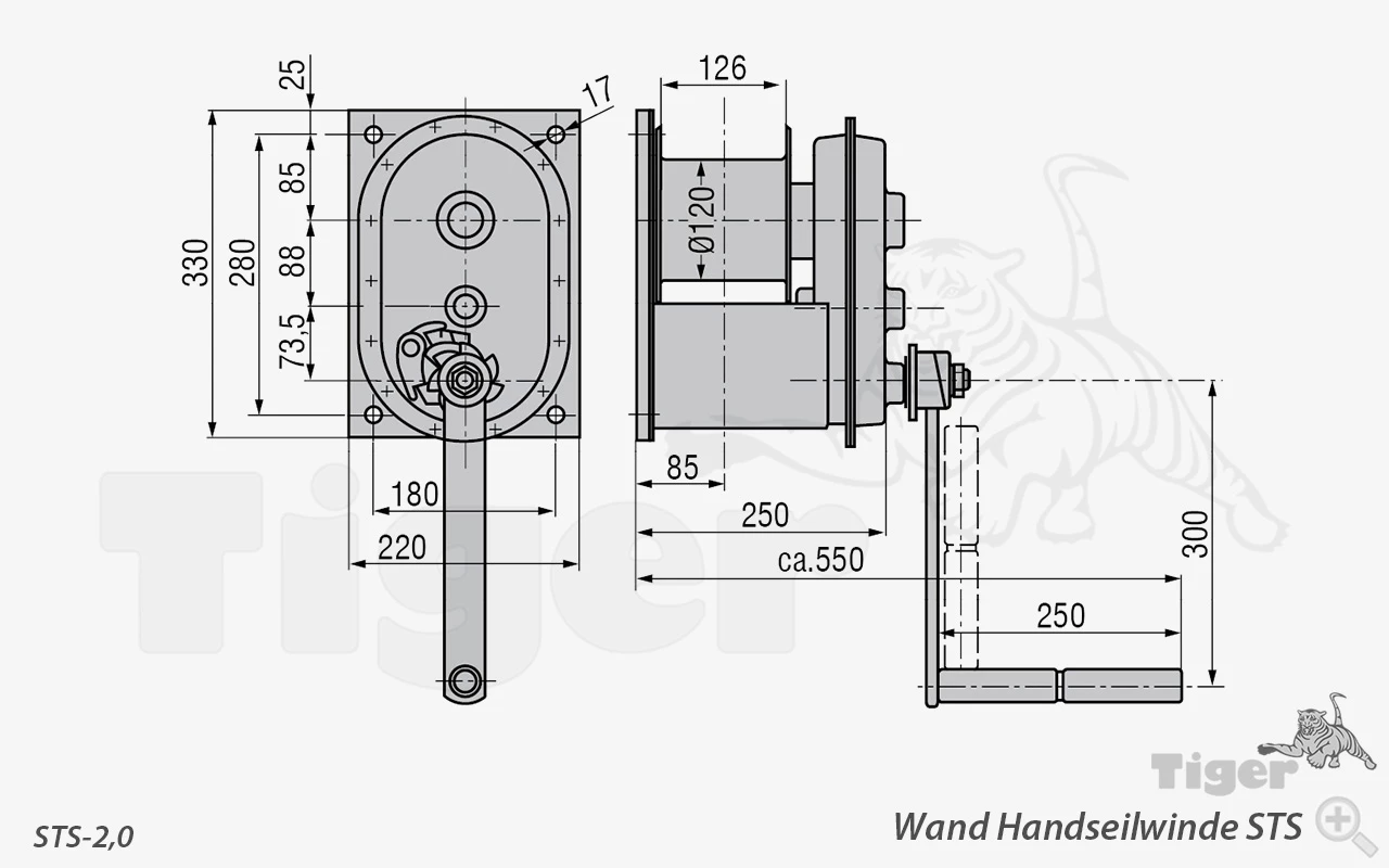 Handseilwinde STS mit Bremse und Stirnradgetriebe zur Wandmontage