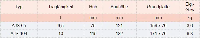 | AJS-104 | 115 [mm] | 10.000 [kg] | 1.210,00 € | Übernehmen |