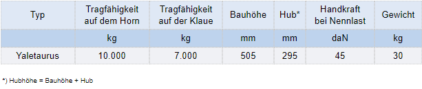 Zahnstangenheber Yaletaurus mit Hublaue und Horn - Optimaler Stangenheber bei wenig Platz