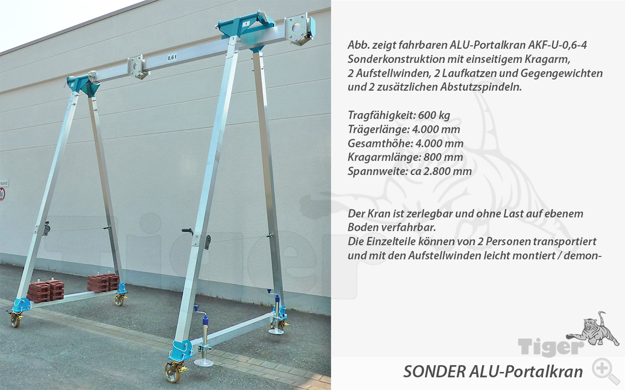 Alu-Portalkran AKF-HV-1000 - Der unter Last verfahrbare, höhenverstellbare und klappbare Leichtbaukran