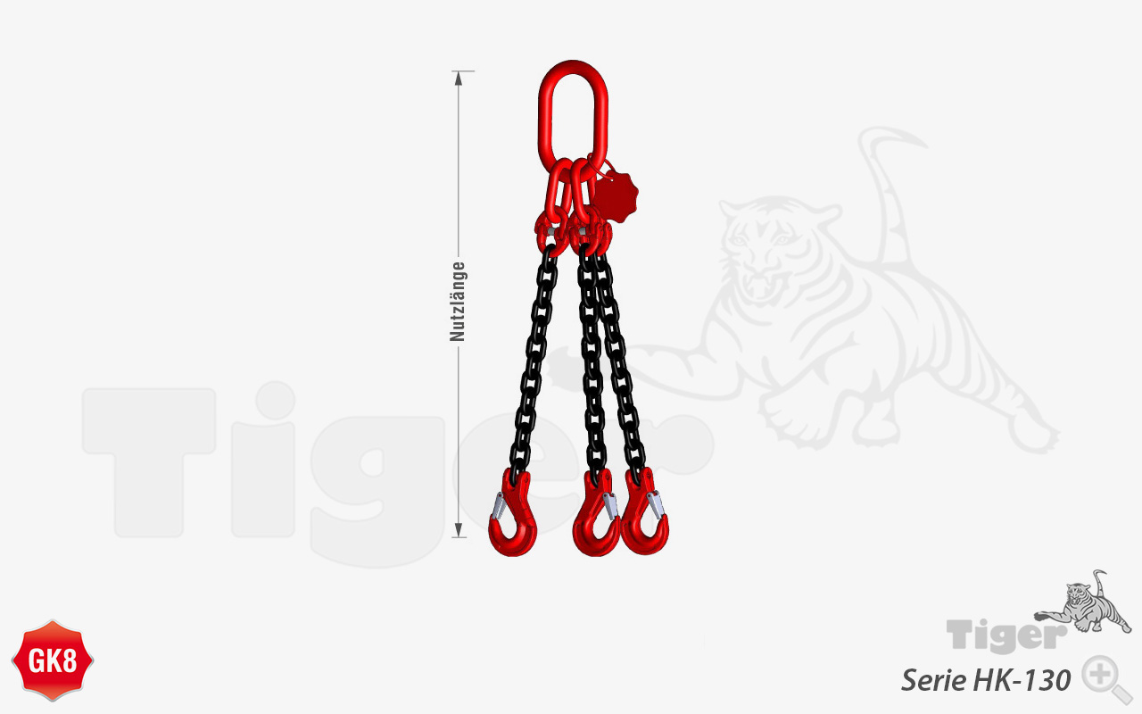 3-Strang-Kettengehänge HK-130 mit Gabellasthaken in GK8